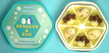 | バレンタインのチョコレートです。 今年はAQUA WORLDという名前のシリーズのようです。 食べ物の保存は困難なので、もう食べ物本体の蒐集はひかえようと思っています。 (箱や包み紙にペンギンがある物はもちろん集めますが。) 長崎屋岸和田店にて購入 03/02/05 |