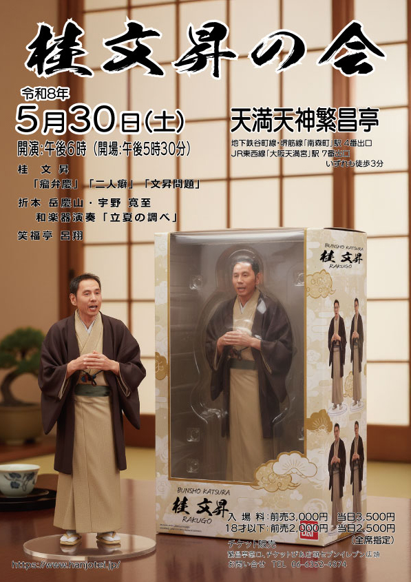 独演会「桂文昇の会」 | 場所:天満天神繁昌亭 木戸銭:前3000 当3500 (18才以下 前2000 当2500) <全席指定> 問合せ:06-6352-4874 |